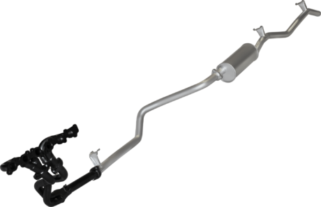 The Manta exhaust for the FZJ75 and FZJ78 Landcruiser ute and troop carrier is a big improvement on the factory version. Consisting of a set of high-flow extractors, together with an “extractors back” 2.5″ mandrel bent exhaust system, the full kit helps the engine breathe a lot better. The result is that it revs freer, develops more power, and has more torque low down in the rev range.