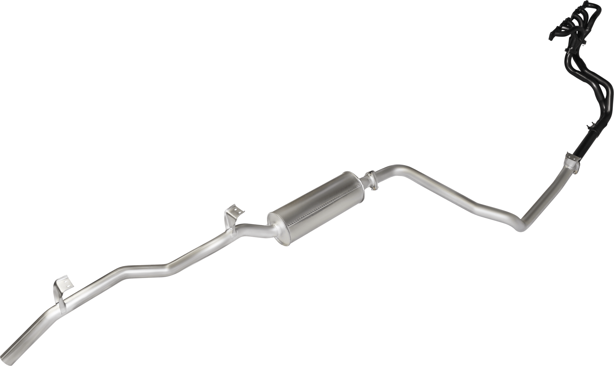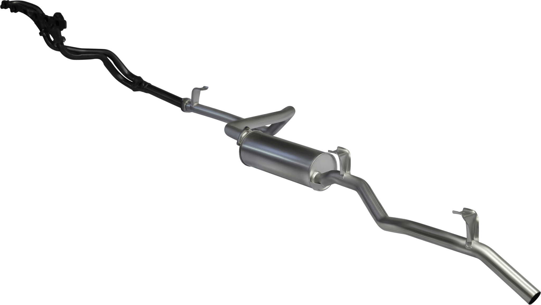 The Manta exhaust for the FZJ75 and FZJ78 Landcruiser ute and troop carrier is a big improvement on the factory version. Consisting of a set of high-flow extractors, together with an “extractors back” 2.5″ mandrel bent exhaust system, the full kit helps the engine breathe a lot better. The result is that it revs freer, develops more power, and has more torque low down in the rev range.