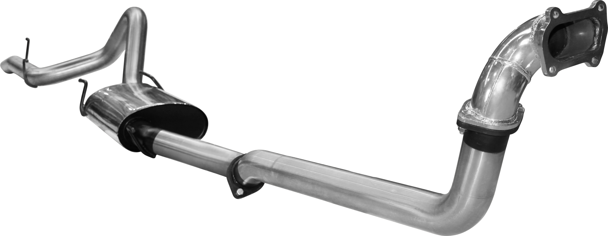 The entire system is designed for easy fitment, following the same path as the standard exhaust system, and using all the same mounting points.